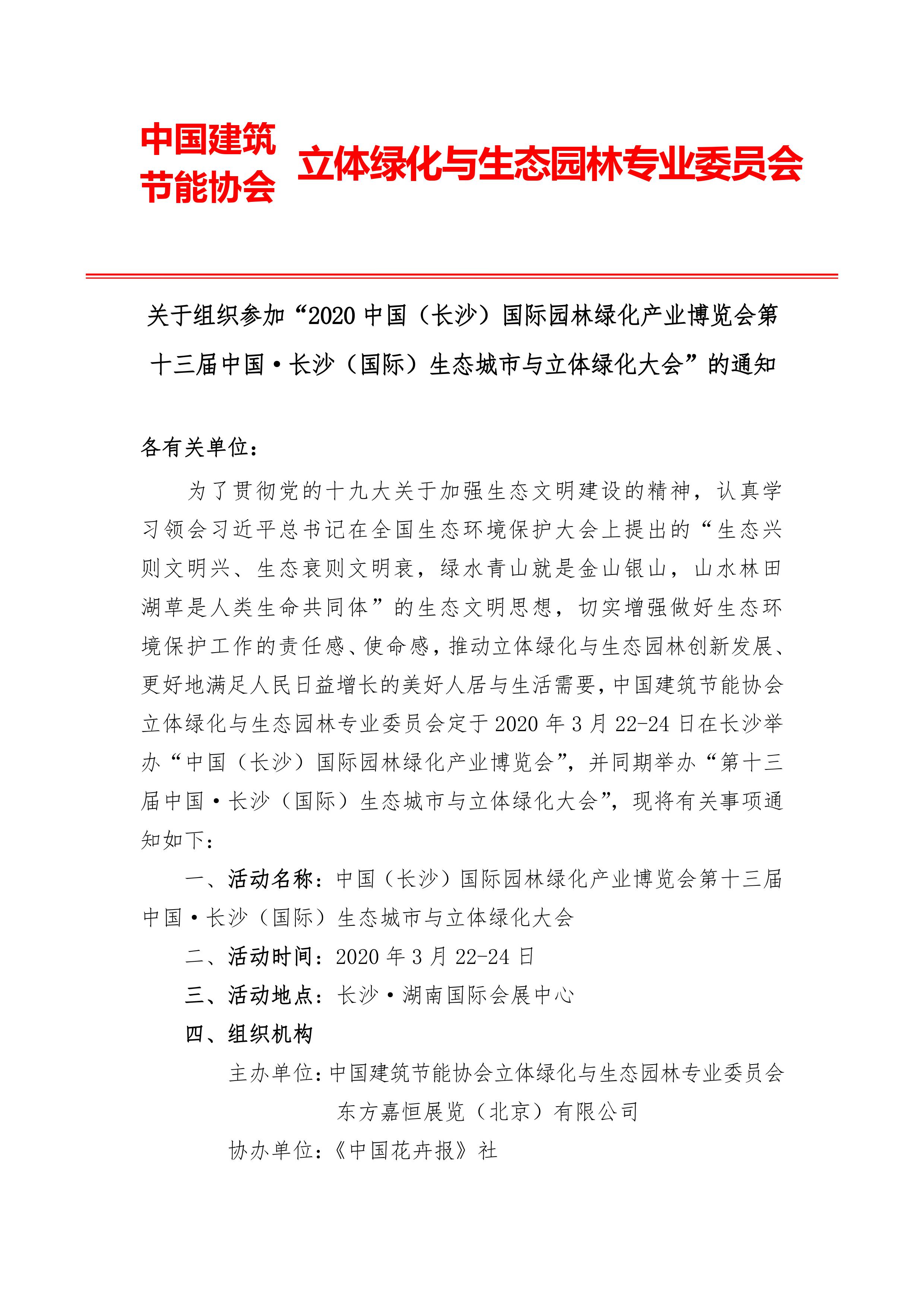 同期活动 | 2020中国(长沙)国际绿化产业博览会第十三届中国·长沙(国际)生态城市与立体绿化大会